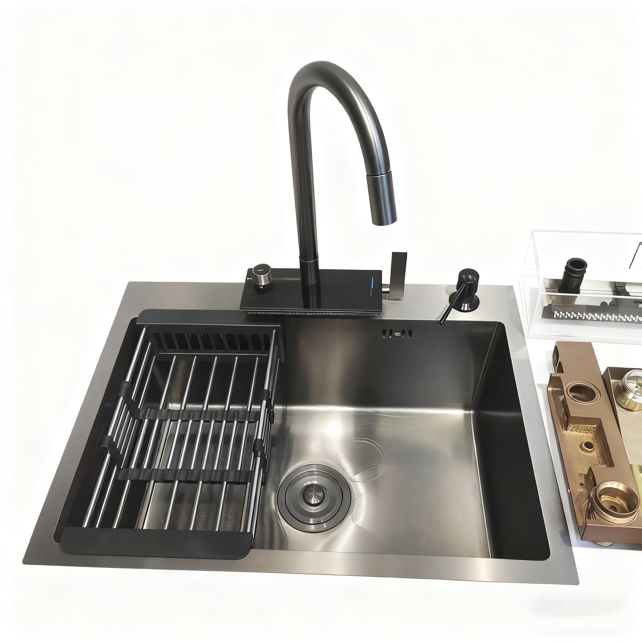 Ontworpen voor eenvoudige installatie en eenvoudig onderhoud, is deze keukenwastafel een ideale keuze voor huiseigenaren die hun keuken willen upgraden met een betrouwbare, stijlvolle en hoogwaardige armatuur.
